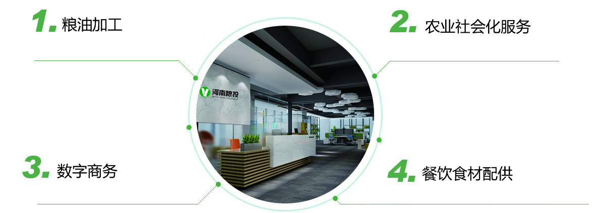 “四輔”:即以“糧油加工”、“農(nóng)業(yè)社會化服務(wù)”、“數(shù)字商務(wù)”、“食材配供”為輔助業(yè)務(wù)。