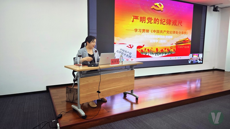趙秀華圍繞《嚴明黨的紀律戒尺》為主題,從嚴明黨紀的緊迫性與重要性、黨的紀律建設歷史變遷、新條例的修訂內容等三個方面結合具體案例,對《中國共產黨紀律處分條例》進行了解讀,內容生動、觀點新穎,引導黨員干部進一步樹牢紀律觀念、強化紀律敬畏、嚴格紀律約束,為黨員干部上了一堂生動精彩的黨紀教育課,對增強黨員干部廉潔從業意識起到積極作用。會后集體觀看了警示教育片《“碩鼠”現形記》。